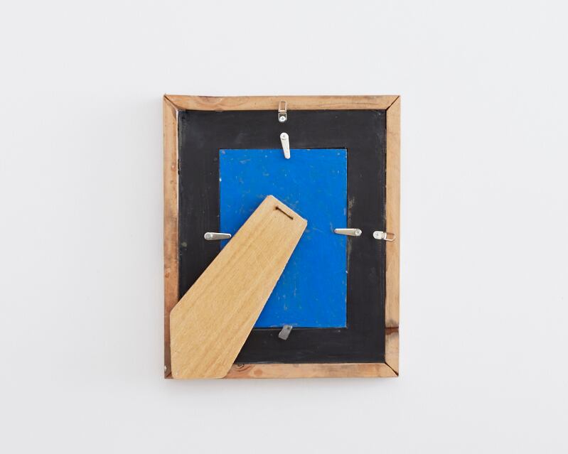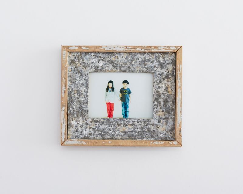 枠は古材を使用し、中は合板にオーストリッチ調皮革を貼り、エイジング塗料しております。